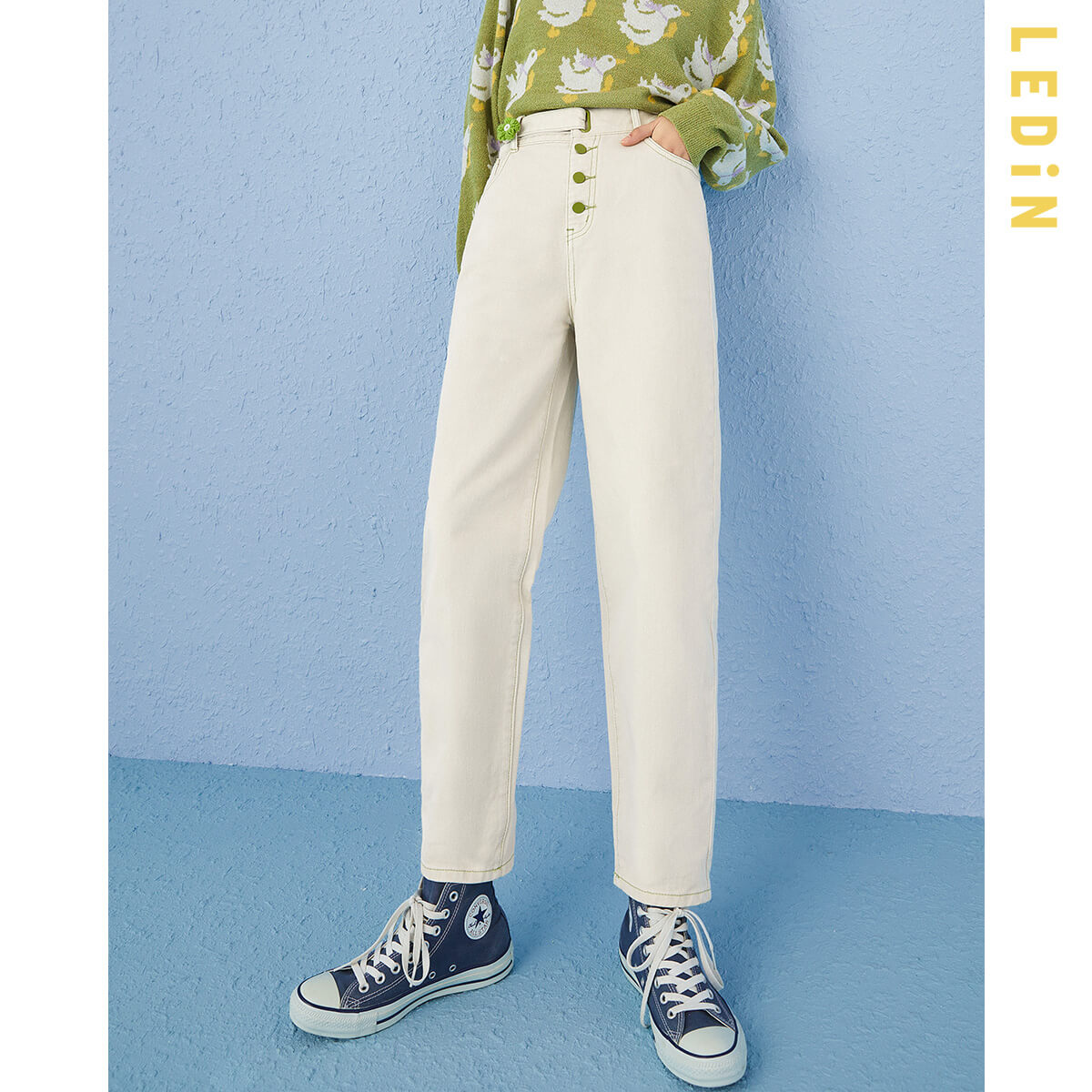 2分鐘前直筒牛仔褲女春季新款褲子女裝童趣花花牛仔褲寬鬆 - 套餐二 買1送1-NT$1599
